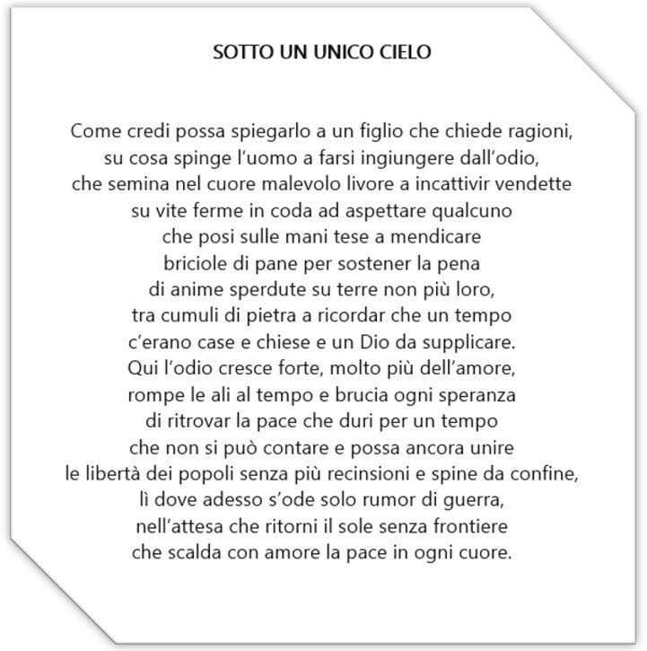 Menzione di Merito alla poesia "SOTTO LO STESSO CIELO"
