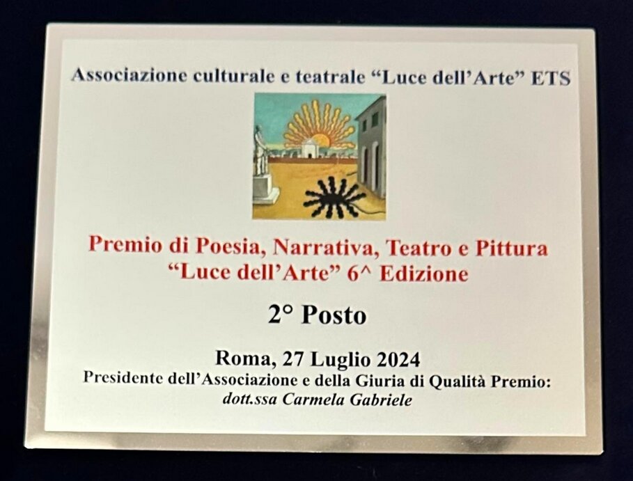 2° Posto per il romanzo IO SONO PAOLA alla 6^ edizione concorso "Luce dell'Arte"